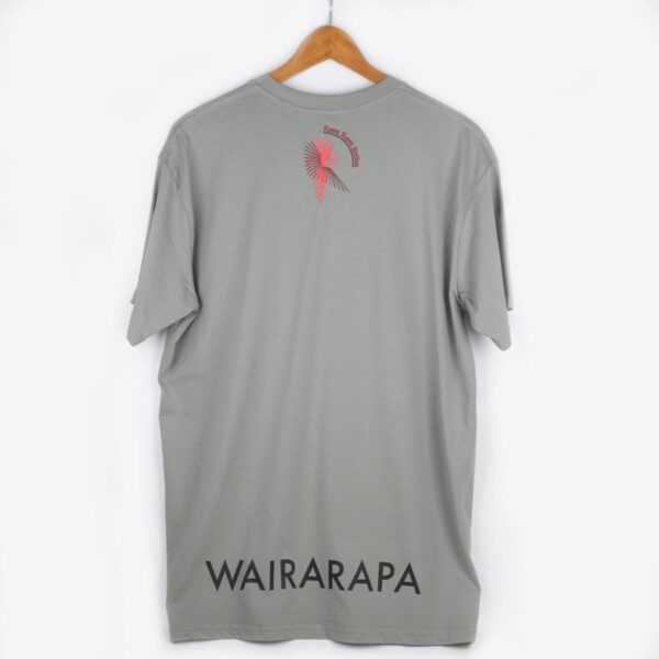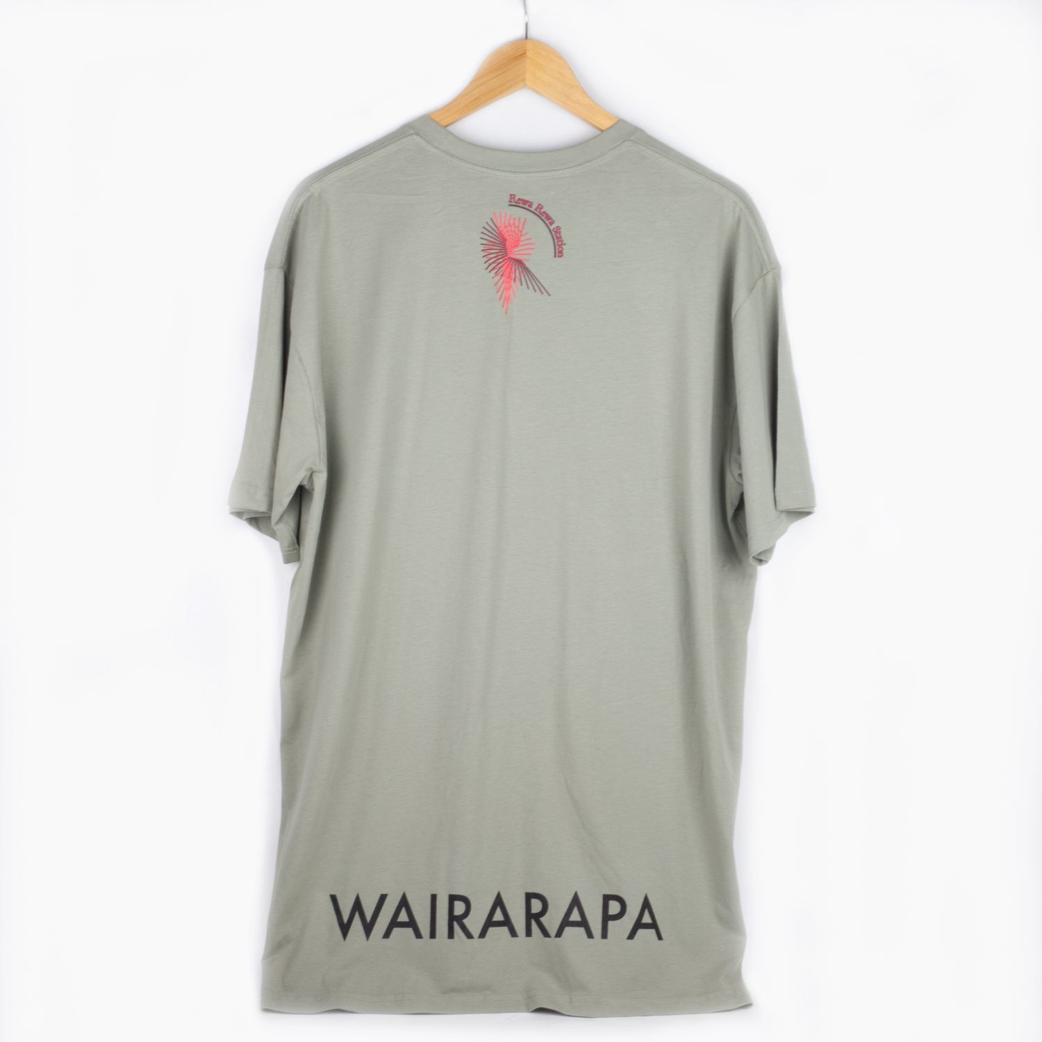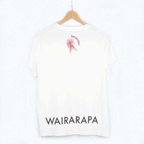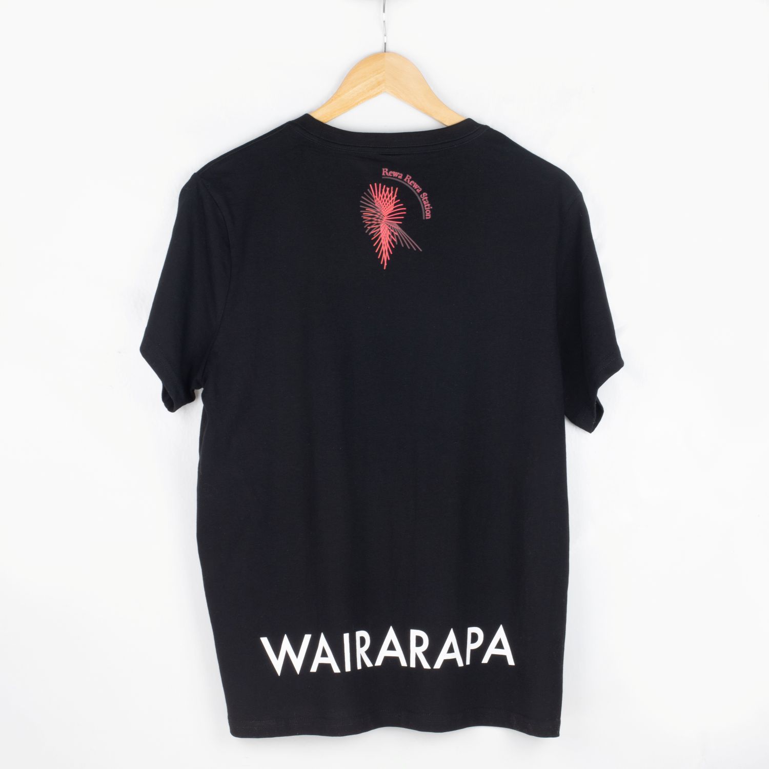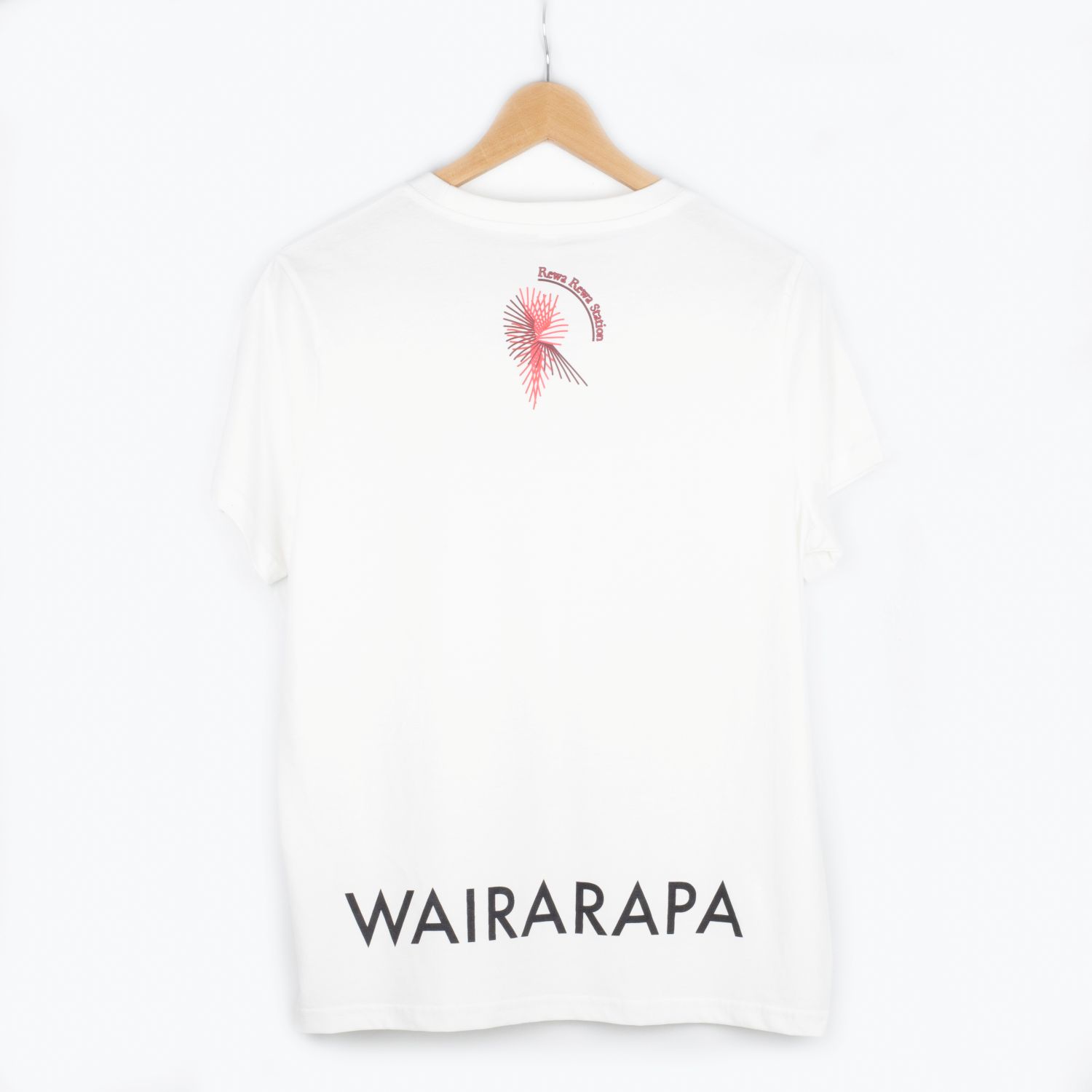 Back: WAIRARAPA printed across the bottom of the T-Shirt and our Rewa Rewa Station logo below the neck
